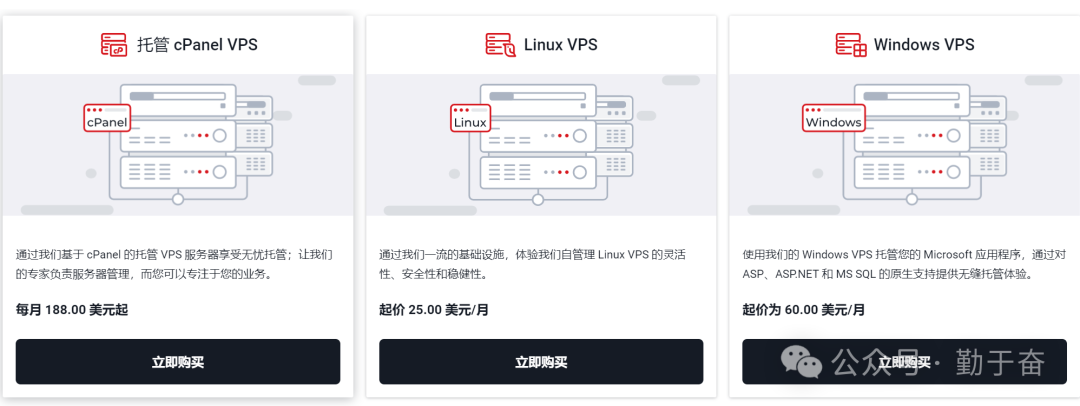 多种服务选项:包括共享主机、VPS、专用服务器和托管 WordPress。