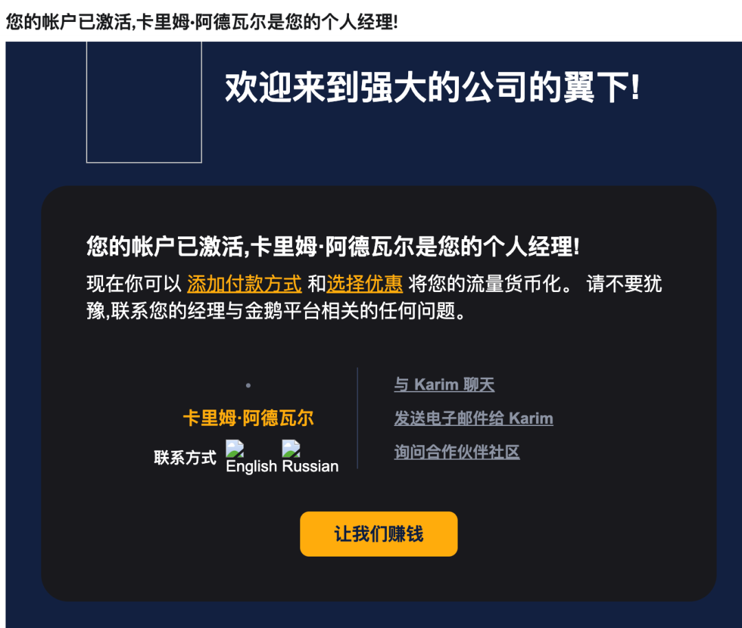 今天给大家分享一个联盟,是我在2020年的时候操作过的一个联盟,最低付款是10美金,一家cpa的联盟Goose Agency,这是一家俄罗斯那边的,09年的时候成立,在18年的时候就向全球开发。
