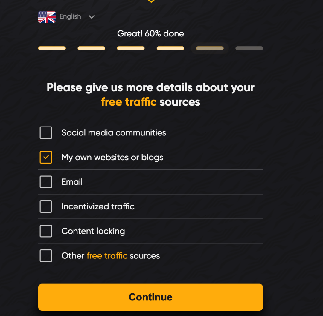 我选择的free流量,然后就问你怎么获取免费,我有自己博客,所以就选择了自己的网站。