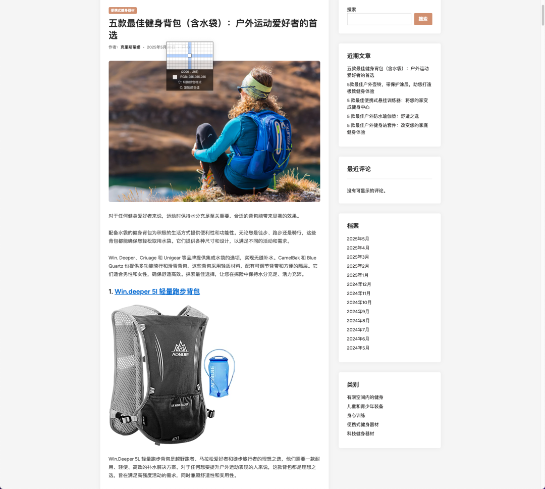 其实我之前给大家主要是先看看网站整体感觉,然后看看整体布局和内容,基本都是一个比较标准的博客系统,图文和文章构成一个网站,今天这个网站:fitnessmoose.com,感兴趣的人可以打开去看看,然后想象自己做的网站跟这个网站差距多大?