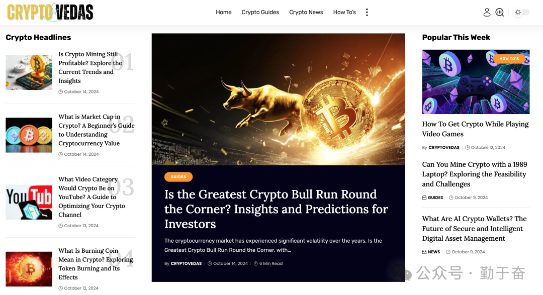 这个网站看到的内容就是一个加密货币的咨询网站,网站板式我觉得跟我课上讲解的差不多,所以拿出来给大家说一下,还算比较中规中矩。