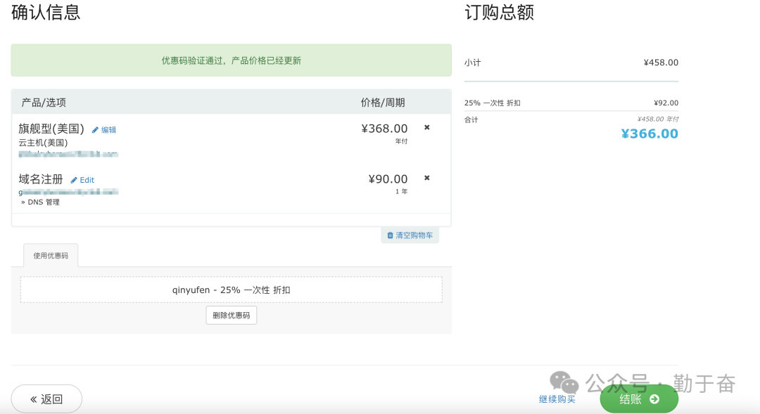 直接上这个368一年,建站不限制,独立IP,然后支持企业邮箱,本来要458,结果输入:qinyufen 这个折扣,就只需要366元了,优惠了92元,而且这一年随便你搭建网站都可以。