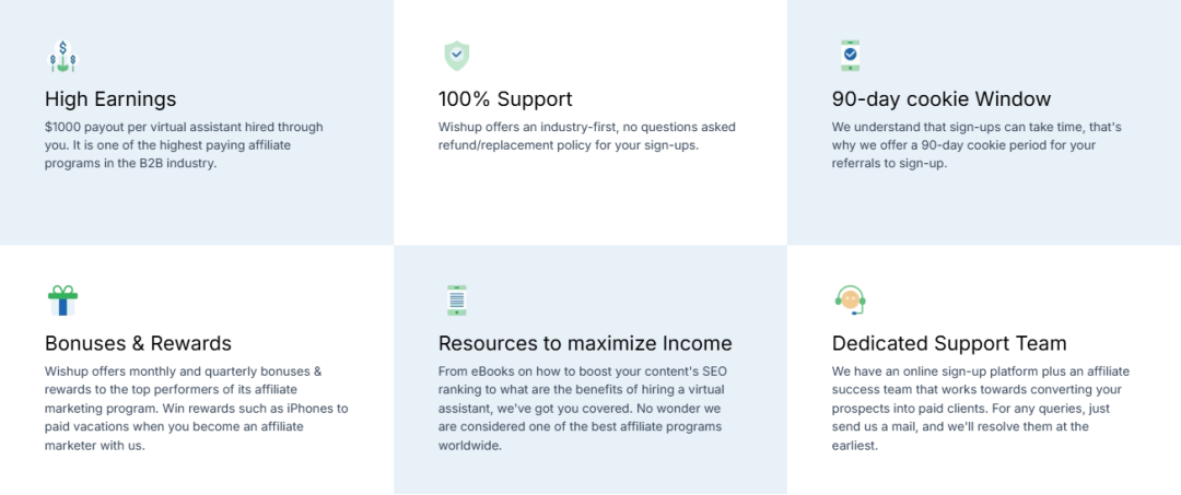 再就是Wishup联盟,我觉得还是一个不错的联盟,Wishup联盟是一个远程工作平台,帮忙推广他们的工具,每一笔提出是1000美金。