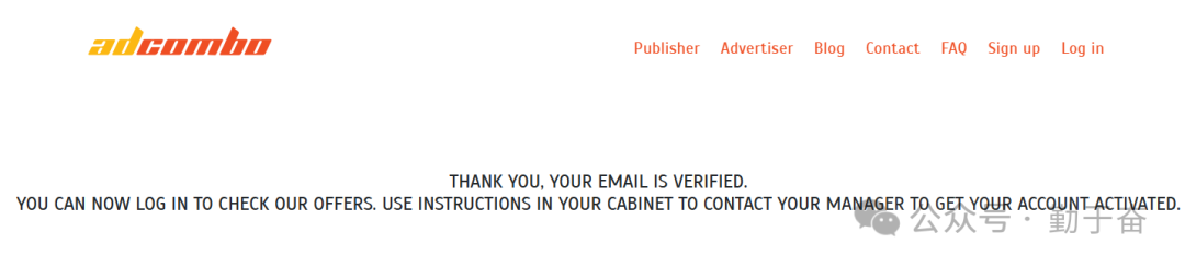 跳转到另外一个页面这里就是提示你要联系联盟经理激活账号,现在只是注册账号成功了。