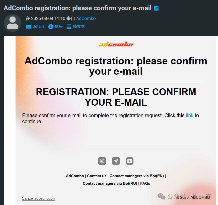 然后进入邮箱里面可以看到如下信息,就是一封确认邮件,点击link进行验证就可以了。