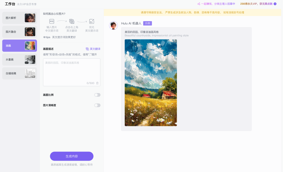 为了解决这一痛点,HuluAI完美接入了Midjourney官方原版的AI绘画!