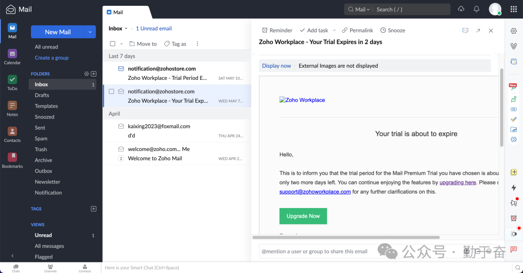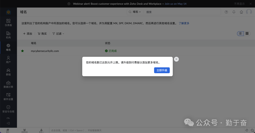 今天我主要是想来继续添加一个域名邮箱,我之前的qinyufen这个邮箱还是使用的老薛主机的,但是老薛主机不是很稳定,所以切换到zoho平台来使用,也方便管理。