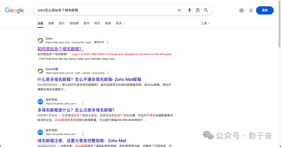 如果你不会,不知道怎么添加多个域名邮箱,那么就可以去google搜索。