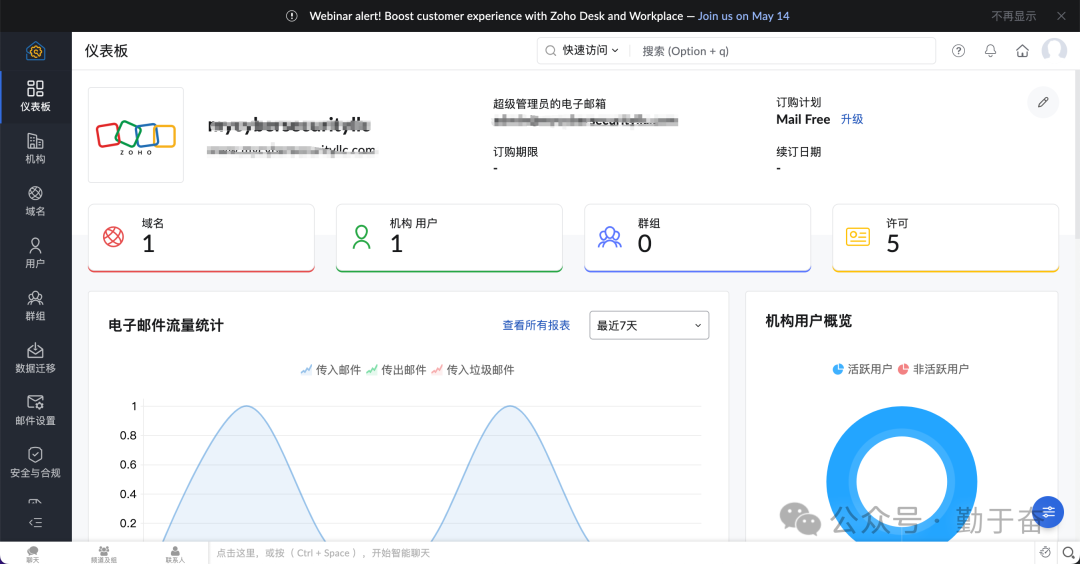 需要去zoho mail 管理控制台查看,这里有链接大家收藏一下